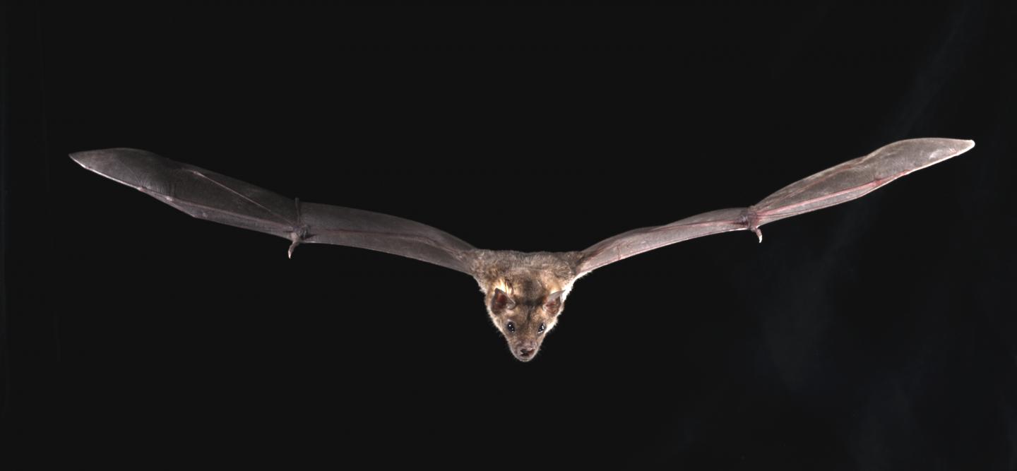 image: A study that sequenced genomes from six widely divergent living bat species, including Phyllostomus discolor, the pale spear-nosed bat, reveals the genetics behind some bat 'superpowers,' such as surviving deadly viruses and to use sound to navigate in darkness.