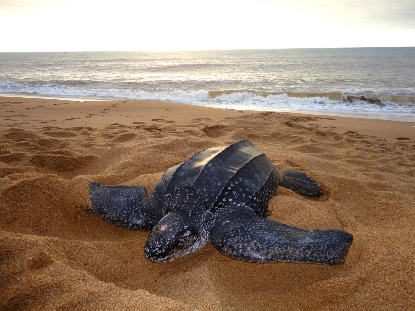 image: Leatherback turtle in Brazil.