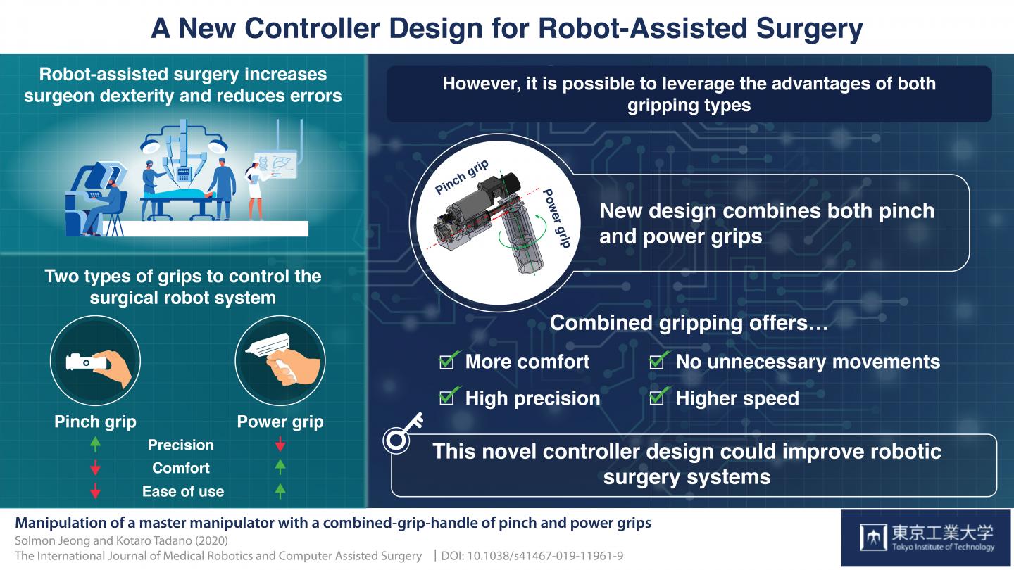Because the pinch grip puts tension on certain muscles of the hand and fingers, it is more likely to cause fatigue. And although the power grip does not seem to cause such discomfort, it offers less precise control. Therefore, there is a trade-off between the discomfort caused by the pinch grip and the lack of fine control of the power grip. Fortunately, Mr. Solmon Jeong and Dr. Kotaro Tadano, a pair of researchers from Tokyo Institute of Technology (Tokyo Tech), found a clever solution to this problem. In a study published in The International Journal of Medical Robotics and Computer Assisted Surgery , the researchers speculated that a master controller that combines both types of gripping can be designed. Dr. Tadano explains, "In robotic surgery, the limitations of the two conventional gripping methods are strongly related to the advantages and disadvantages of each gripping type. Thus, we wanted to investigate whether a combined gripping method can improve the manipulation performance during robotic surgery, as this can leverage the advantages of both gripping types while compensating for their disadvantages."