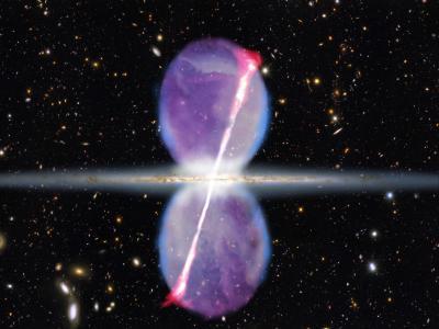 The two structures also formed differently. The jets were produced when plasma squirted out from the galactic center, following a corkscrew-like magnetic field that kept it tightly focused. The gamma-ray bubbles likely were created by a "wind" of hot matter blowing outward from the black hole's accretion disk. As a result, they are much broader than the narrow jets.