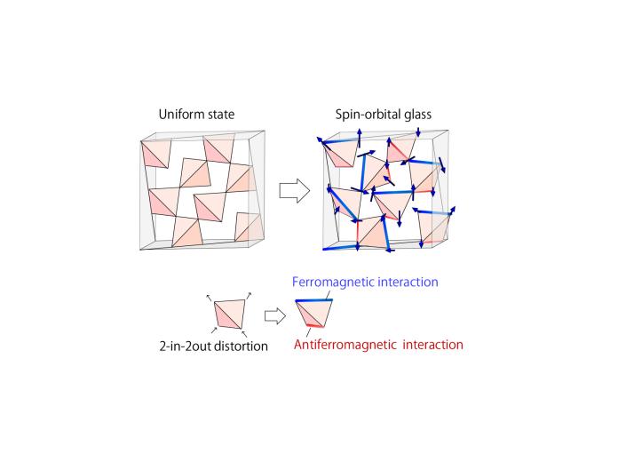 While nature often appears to favor symmetric forms, there are cases in which tetrahedral crystals are more stable when one side is elongated and another is compressed, in a process called the Jahn-Teller distortion. The researchers found that this change coupled the spin and orbital degrees of freedom, which made them undergo glass transitions at the same critical temperature. "We were happy to be able to help solve a long-standing puzzle on the origin of the disorder-free spin glass," adds senior author Hajime Yoshino.