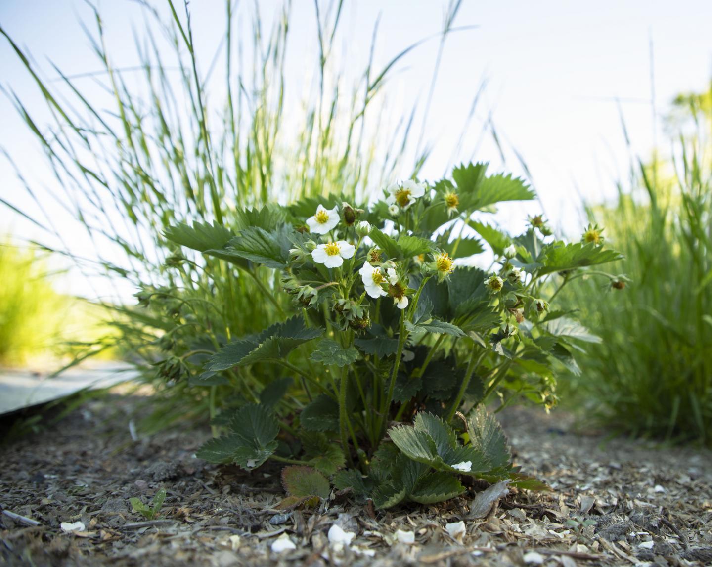 image: Strawberry and meadow fescue were used in the study.