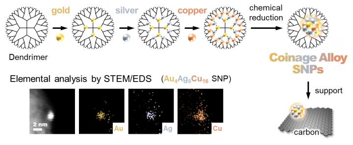 To overcome this, researchers at the Tokyo Institute of Technology led by Dr. Takamasa Tsukamoto and Prof. Kimihisa Yamamoto previously developed the atom hybridization method (AHM) which surpasses the previous trials of SNP synthesis. Using this technique, it is possible to precisely control and diversely design the size and composition of the SNPs using a "macromolecular template" called phenylazomethine dendrimer. This improves their catalytic activity than the NP catalysts.