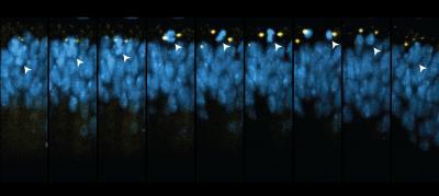 The work also identifies brand-new suspects for the Gibson lab. Wing disc cells and cells that line almost every mammalian body cavity are epithelial cells, which grow in sheets. They divide in a peculiar fashion: right before mitosis the nucleus of an elongated epithelial cell moves into one end of the cell for cell division, a process called interkinetic nuclear movement (IKNM). Gibson is interested in the mechanics of IKNM, in part because epithelial cell cancers, termed carcinomas, comprise over 80% of all malignancies. "One motivation for this study was to discover what links IKNM to the cell cycle," he says. "That required a global view."