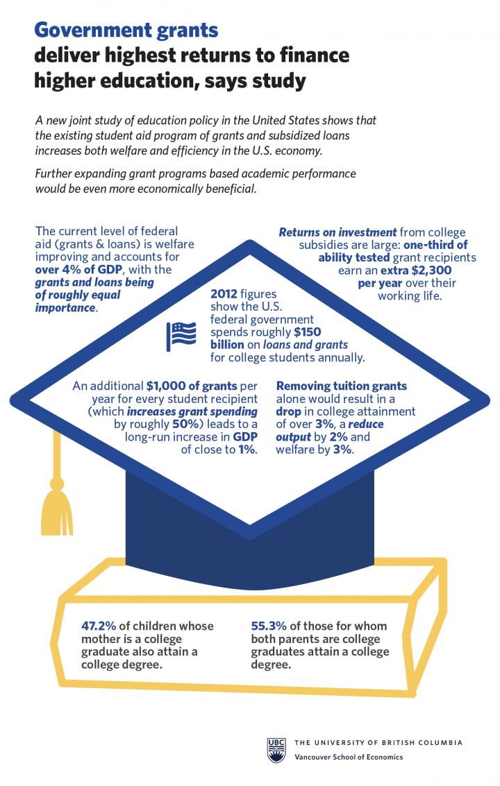 "We found that a $1000 increase in grants per year for every student, which corresponds to roughly a 50 per cent increase on average, would lead to a long-run gain in GDP of close to one per cent," said study co-author Giovanni Gallipoli, an associate professor at the Vancouver School of Economics at UBC. "This is a comparatively large return on investment."
