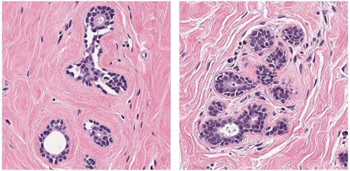 image: AI algorithms performed well on easier breast cancer image patches, like these.