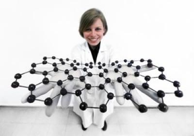 Researchers from the Institute of Physical Chemistry of the Polish Academy of Sciences in Warsaw developed a low cost, simply implementable method for chemical production of graphene coatings with a thickness of a few hundreds nanometer. The picture shows Izabela Kamiska, a Ph.D. student from the IPC PAS, presenting the graphene structure.