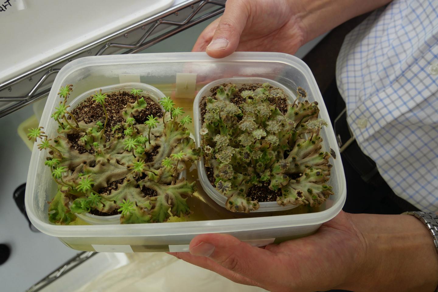 To pin down the potential role of this evolutionarily conserved microRNA, Watanabe's research group created a genetically modified version of liverwort that lacked microRNA156/529. Those so-called microRNA156/529 knockout liverworts produced reproductive cells on their vegetative tissues rather than developing the normal umbrella-shaped reproductive structures that distinguish males and females.