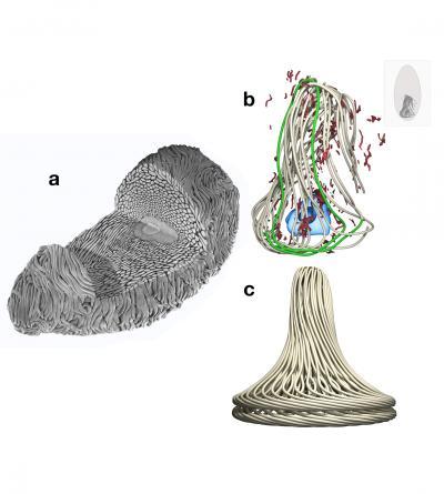 Changes in nuclear morphology, size and position explain how the threads are coiled in cells, and the threads change in length and width as cells mature. The next step is to unravel the biochemical and biophysical mechanism behind those changes. "This study provided information about how the thread coils and fills the cells as it grows," Fudge said.