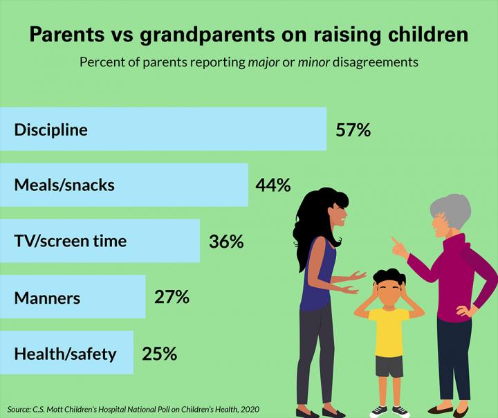 But for others, clashes over parenting choices and enforcing parents' rules can cause major strife between a child's parents and grandparents, a national poll suggests.