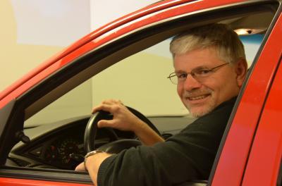 David Strayer, a University of Utah psychology professor, with a driving simulator that was part of a major new study he conducted for the AAA Foundation for Traffic Safety. The study found that, contrary to what many people believe, motorists are seriously distracted and put themselves and others at risk when they use hands-free devices to make cell phone calls, use social media or send texts or e-mails while driving.