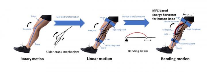 The researchers used a special smart macrofiber material, which generates energy from any sort of bending it experiences, to create a slider-crank mechanism -- similar to what drives a motor. The authors chose to attach the device to the knee due to the knee joint's large range of motion, compared to most other human joints.