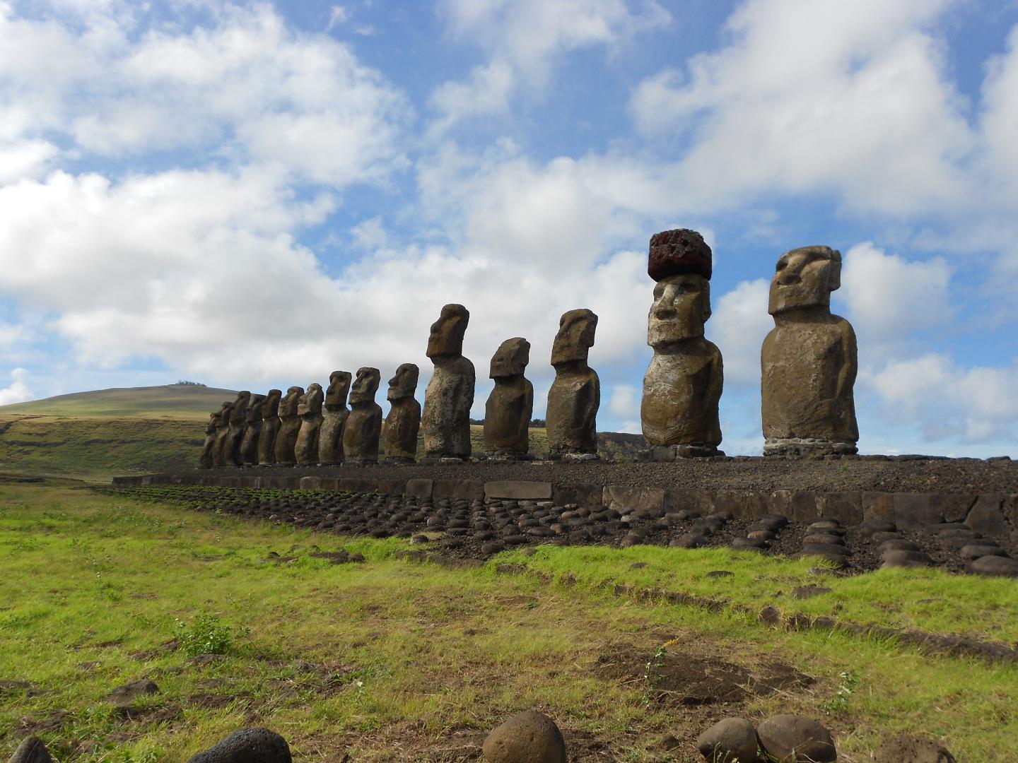 "The best explanation for the transport of the pukao (hats) from the quarry is by rolling the raw material to the location of the moai (statues)," said Lipo. "Once at the moai, the pukao were rolled up large ramps to the top of a standing statue using a parbuckling technique."