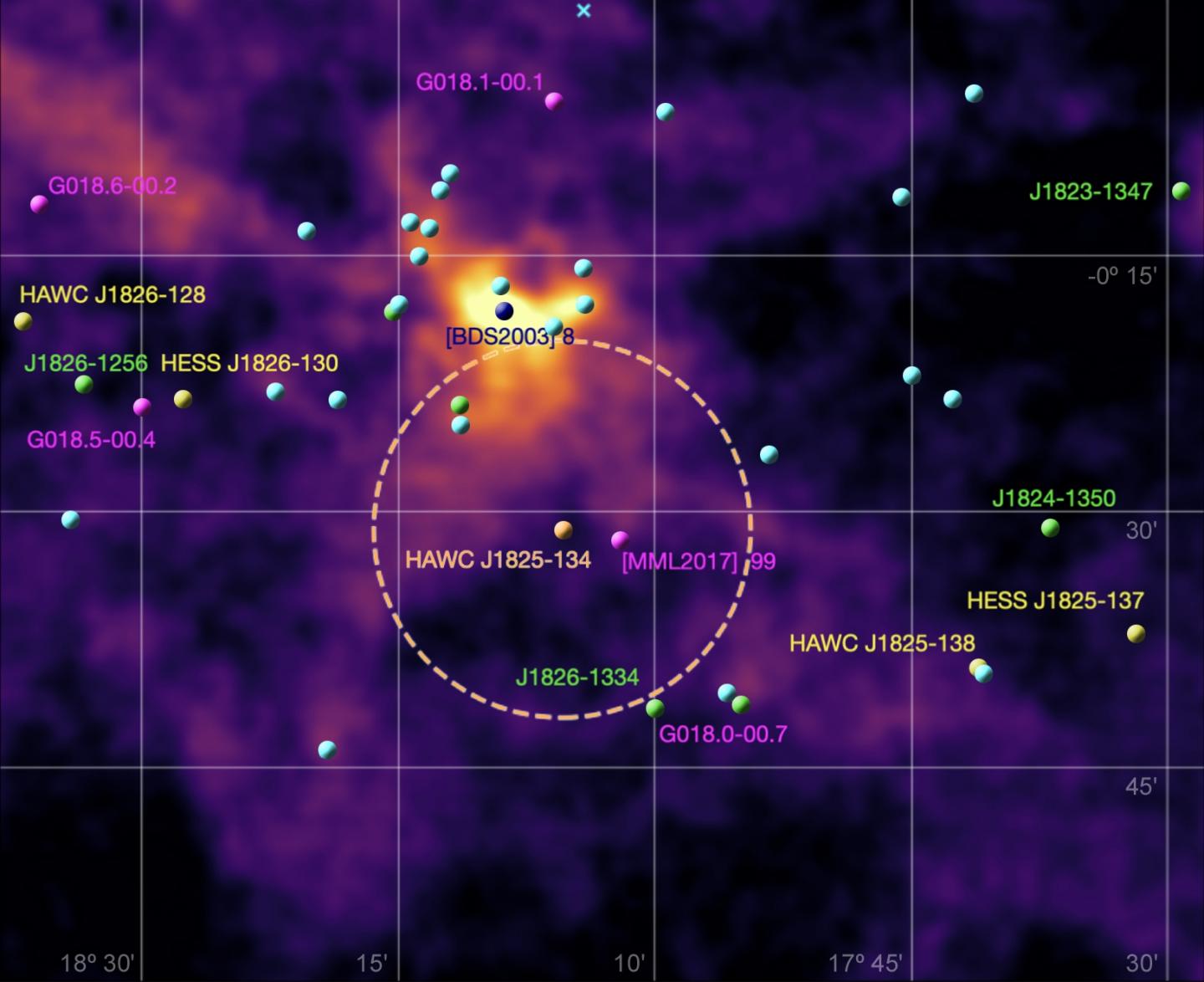 "For the time being, we have too little data to unambiguously decide on the nature of the cosmic accelerator responsible for the generation of 200 TeV photons in the region of eHWC J1825-134. If, however, there is a galactic pevatron hiding somewhere, we have managed to find a really excellent candidate," notes Dr. Casanova.