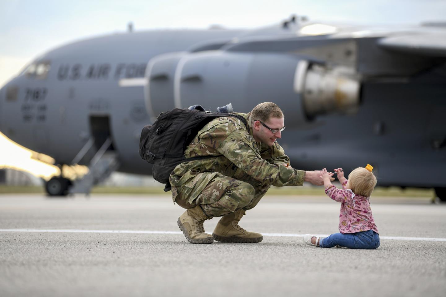 image: In this US Air Force image, an airman reunites with his daughter following a deployment. A new study by Veterans Affairs researchers and colleagues has found that health ranks as the top concern for veterans newly separated from military service.