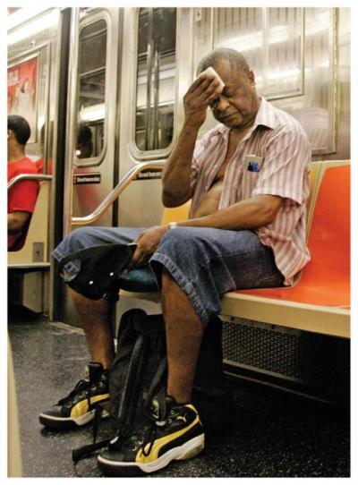 Heat-related fatalities are projected rise steeply in Manhattan due to warming climate. This man rode a subway car during an August 2006 heat wave.