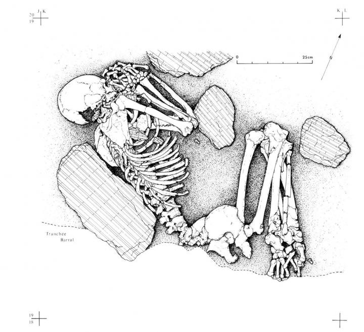 image: The burial of Pendimoun F2 (5480-5360 BC), woman carrying about 55% of hunter-gatherer component.