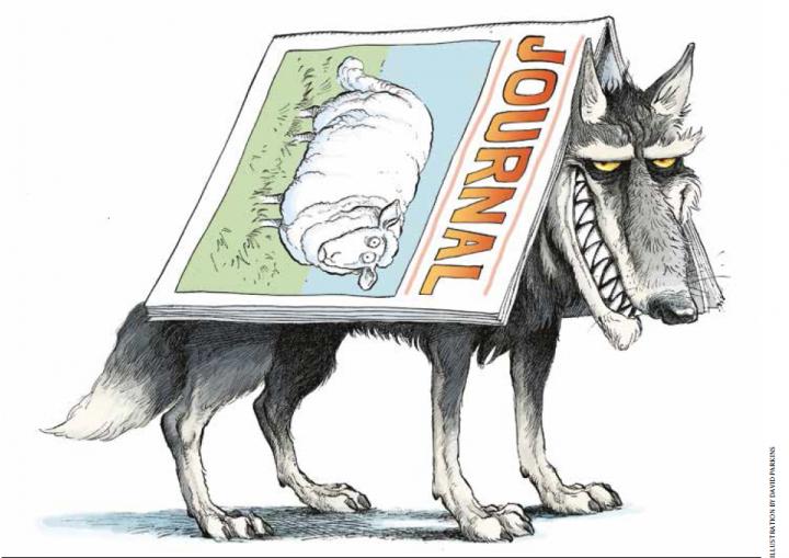 At a recent international meeting in Ottawa, the team of experts reached this consensus definition: "Predatory journals and publishers are entities that prioritize self-interest at the expense of scholarship and are characterized by false or misleading information, deviation from best editorial and publication practices, a lack of transparency, and/or the use of aggressive and indiscriminate solicitation practices."