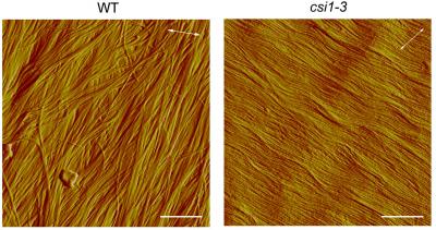 "CSI1 acts as a linker protein, helping the cellulose synthase complex deposit microfibers," said Gu. "We thought that without CSI1, microfibers in the mutant would be deposited in random orientations. Instead, we found that the microfibers in each layer were all deposited in the same direction, which was a huge surprise."
