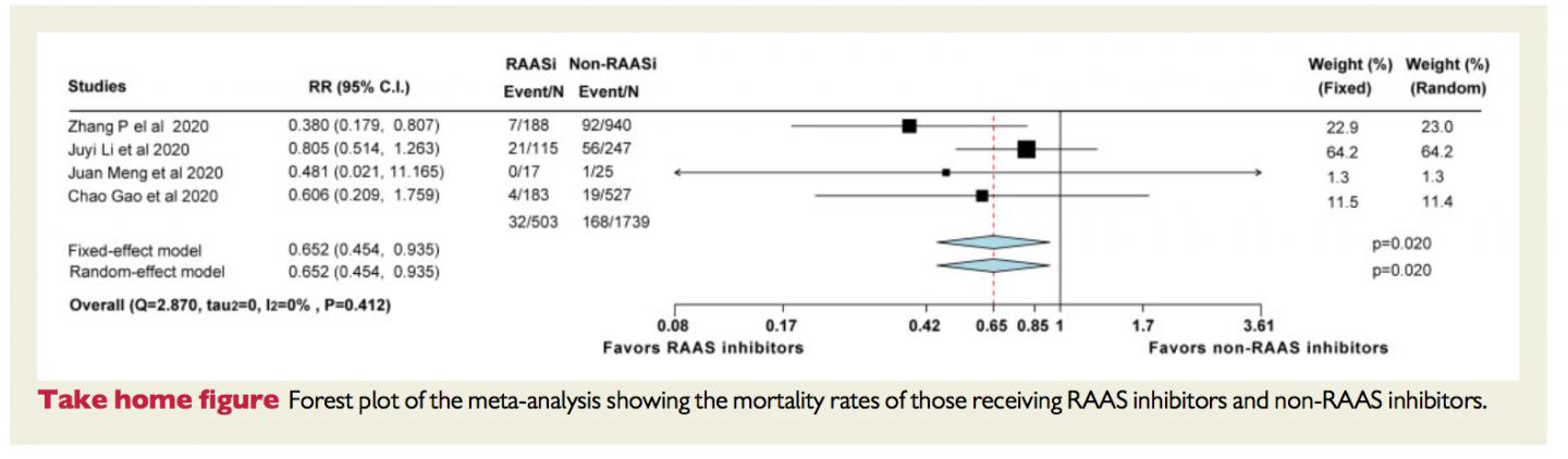 They found a lower risk of death among the 183 patients treated with RAAS inhibitors than in 527 patients treated with other drugs. However, the researchers say this result should be treated with caution as the number of patients in this analysis was small and so it could be due to chance.