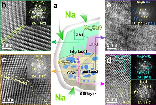 Most of conversion and alloying reactions type battery materials usually experience severe capacity degradations due to having completely different crystal structures and large volume expansion before and after the reactions. However, copper sulfides underwent a gradual crystallographic change to make the semi-coherent interfaces, which eventually prevented the pulverization of particles. Based on this unique mechanism, the team confirmed that copper sulfide exhibits a high capacity and high cycling stability regardless of its size and morphology.