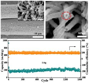 Recently, the joint research groups from the University of Science and Technology Beijing and Institute of Semiconductors, Chinese Academy of Sciences directly synthesized Nb2O5 nanotubes and nanowire-to-nanotube homojunctions on carbon cloth (CC) via a simple hydrothermal process, which was published in Science China Materials (DOI: 10.1007/s40843-020-1278-9). The as-prepared Nb2O5@CC nanotubes displayed a high reversible capacity of 175 mAh/g at the current density of 1 A/g with the Coulombic efficiency of 97% after 1500 cycles. Moreover, the SICs fabricated with Nb2O5@CC and activated carbon (AC) electrode materials showed high energy density of 195 Wh/kg at 120 W/kg, power density of 7328 W/kg at 28 Wh/kg and 80% of the capacitance retention after cycling for 5000 cycles.