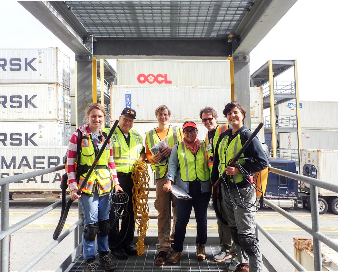 image: With backpack vacuums, the research team went looking for nonnative plant seeds on air-intake grilles of refrigerated shipping containers - and found thousands of them.