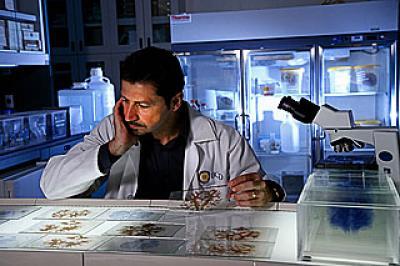 Jacopo Annese examines final brain tissue slides, which were also digitized for study by researchers worldwide.