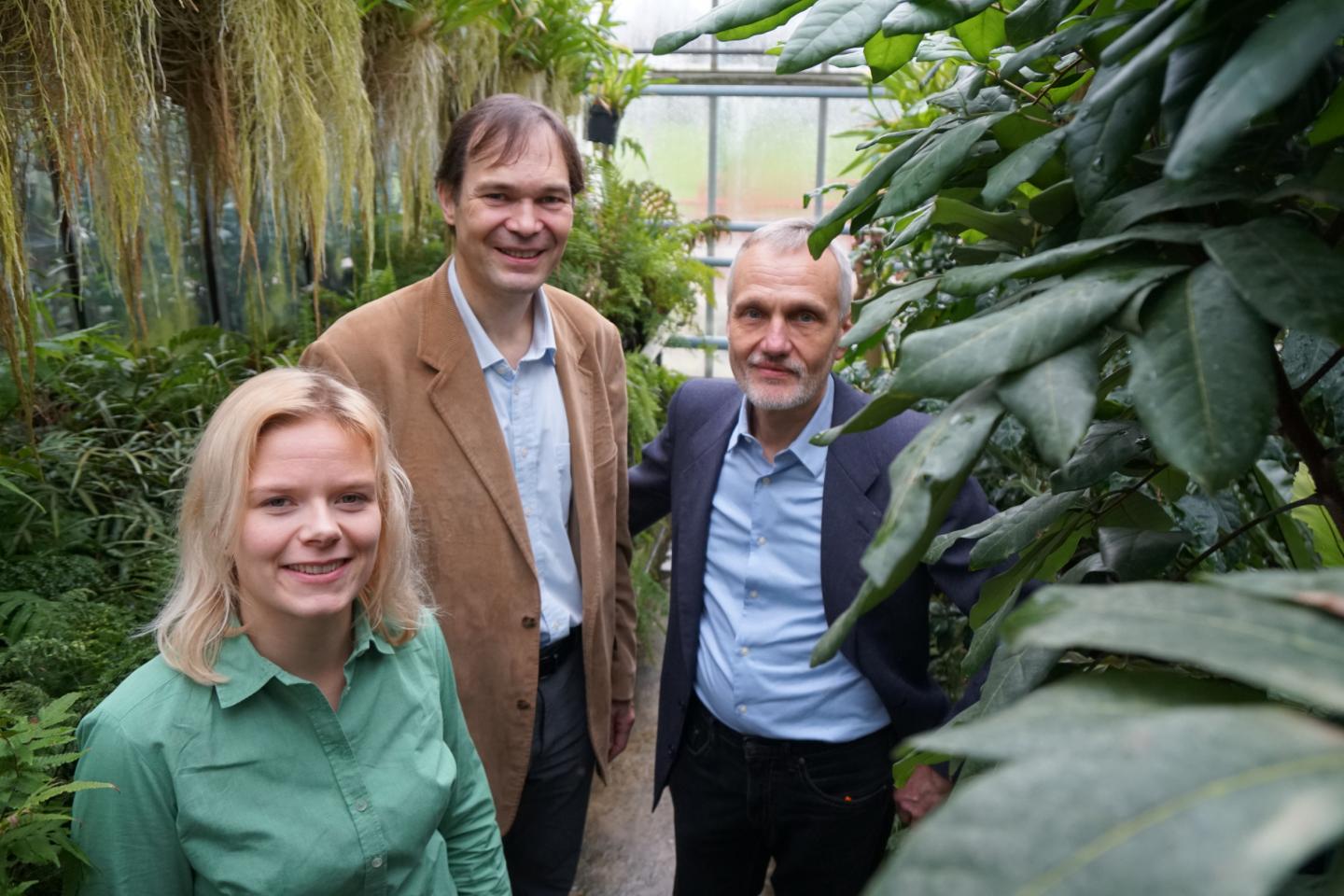 image: How can chemistry be used to produce plant hormones? This is the subject of a new study being carried out by doctoral student Jana Löwe and the two professors, Dr Harald Gröger and Dr Karl-Josef Dietz (from left to right).