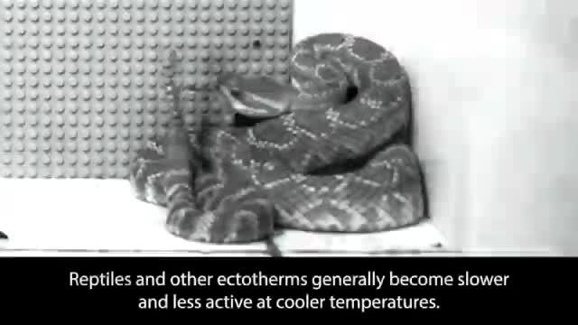 This might help explain how rattlesnakes can thrive even in cooler climates like southern Canada. It also suggests that the snakes are using a mechanism other than just muscles in order to strike, as muscle movement becomes more difficult in the cold.