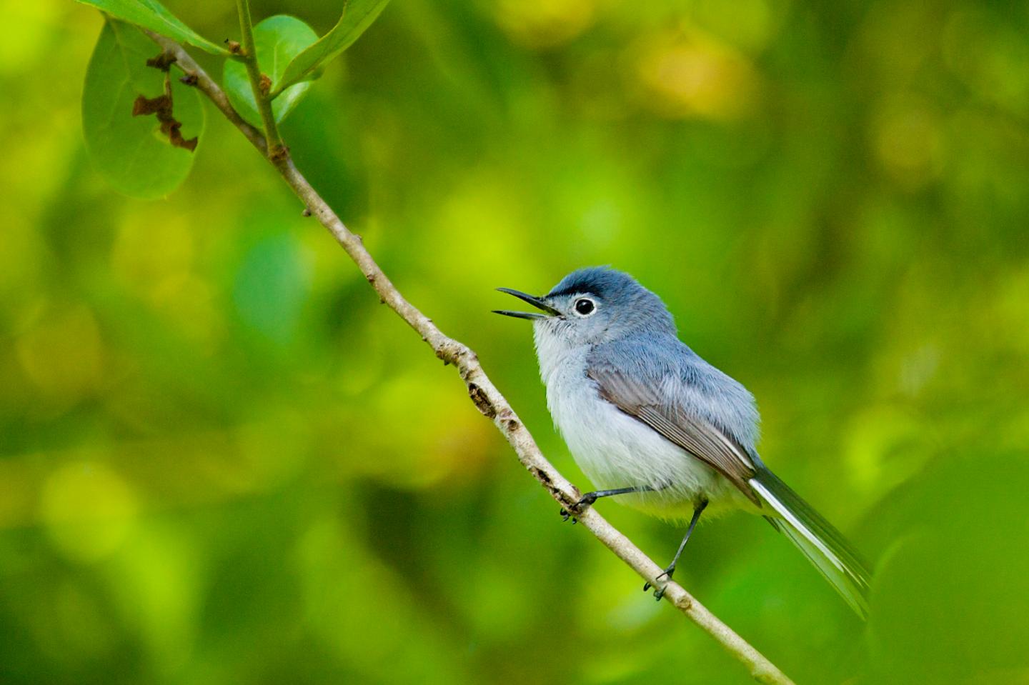 image: Species that pick insects off live leaves and nab them in the air - the most common foraging techniques - are relatively abundant in Florida;s mixed flocks. One example is the blue-gray gnatcatcher, Polioptila caerulea.