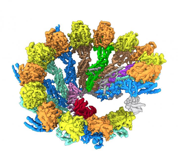 "To assemble microtubules from their individual components, the cells use structural templates that mimic one layer of the microtubule helix and can serve as a starting point for the newly forming microtubules," explains Dr Stefan Pfeffer, junior research group leader at the Center for Molecular Biology of Heidelberg University (ZMBH). In human cells, the gamma-tubulin ring complex (γ-TuRC) serves as such a structural template. To more accurately understand how it influences the formation of microtubules, the scientists used cryo-EM for determining the structure of the γ-TuRC at molecular resolution. The study elucidates in detail how the γ-TuRC is structurally organised and how its approximately 30 different subunits are assembled. It also clarifies how the formation of microtubules on γ-TuRC can be quickly regulated by a simple change in the ring diameter.
