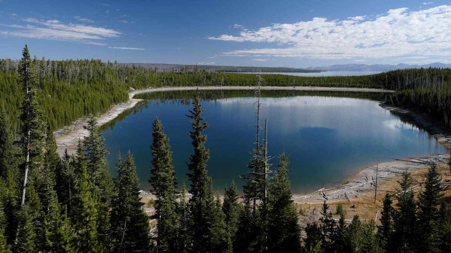 image: The iconic landscape of Yellowstone National Park is characterized by vast forests that have been untouched by man but are threatened by increasing numbers of forest fires due to climate change.