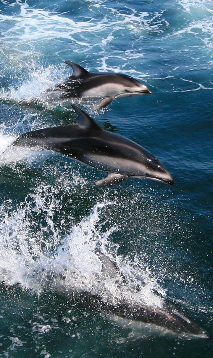 image: Deep-diving whales and other marine mammals like these Pacific white-sided dolphins can get the bends--the same painful and potentially life-threatening decompression sickness that strikes scuba divers who surface too quickly.