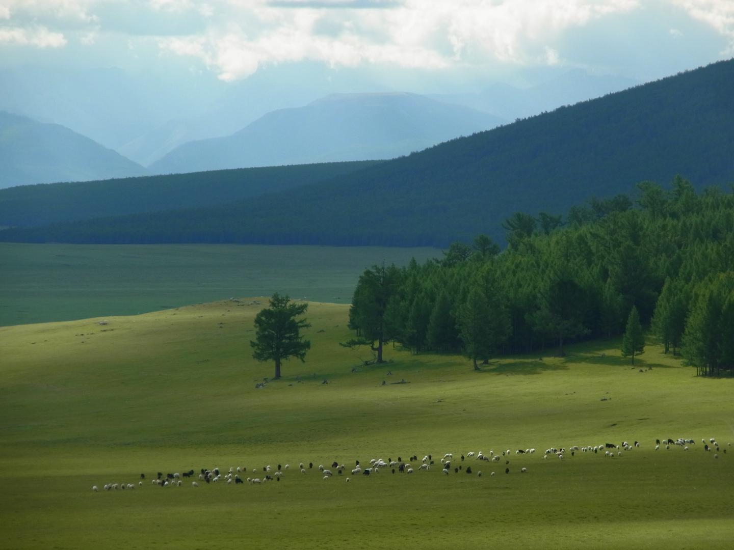 image: Mongolian landscape with pastoral herd of sheep and goats