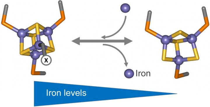 The results revealed a 'loose' iron atom in the cluster. When iron levels drop, this atom is rapidly lost as it is scavenged for use in other essential cellular processes.