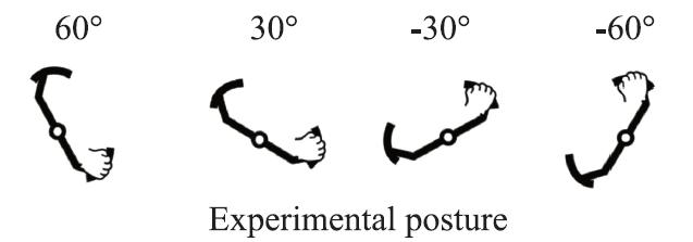 This study used a weighted steering wheel where participants performed actions with it using one hand. The position of the arm was changed to see if the subjects perceived the resistance as greater or lesser when compared to a neutral posture (0°). The modified positions were at 30°, 60°, -60° and -30° (similar to hands pointing to 1, 2, 4 and 5 on the clock). The participants were asked to perform a task using the steering wheel and differing weights. The research team used 3D motion capture to look at the posture and used algorithms to model the data. Using this method, the researchers could look at the whole arm and torso posture. Participants were also asked about how heavy the steering wheel was when compared to the neutral position. They reported a large change in the amount of force used at 30°, -60° and -30° i.e. these angles were the most biased.