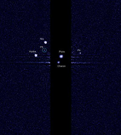 Provisionally designated S/2012 (134340) 1, or P5, the latest moon was detected in nine separate sets of images taken by Hubble's Wide Field Camera 3 on 26, 27 and 29 June, and 7 and 9 July 2012.