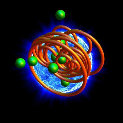 This shows vortex rings as the result of vortex multiplication in a quantum fluid. Some electrons are free, some got trapped by one or more vortices.