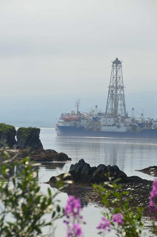 image: The JOIDES Resolution, a research vessel that drills into the ocean floor to collect and study core samples is seen at the Port of Valdez. The JR is a part of the International Ocean Discovery Program and is funded by the National Science Foundation.