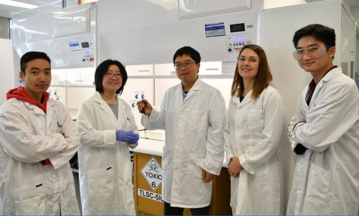 image: Flinders University Professor Youhong Tang, from the Australia-China Centre for Personal Health Technologies, middle, with PhD Anh Tran Pham, left, Xinyi Zhang (Master of Engineering, Major in Biomedical Engineering), Australia-China Centre for Personal Health Technologies director Carolyn Ramsey, and Hao Fu, a graduate of Master of Engineering (Electrical and Electronic), Flinders University.