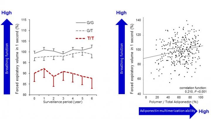The DsbA-L protein is present in many tissues of the body and is a known antioxidant. Although antioxidants generally have a protective effect on cells, it was unclear whether the DsbA-L protein helps to protect the lungs. It is known, however, that it activates adiponectin, a protein produced in adipose tissue (body fat) that helps regulate glucose levels and fatty acids, and enhances lung function. From previous human epidemiological studies, researchers from Kumamoto University knew that adiponectin activation differs depending on DsbA-L gene type (G/G, G/T, or T/T), but they did not know whether these differences affected the antioxidant function in blood or how they affected the maintenance of lung function in humans.