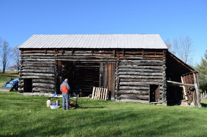 image: Preparing to collect tree-ring samples from The Pitsenbarger Barn in Pendleton County. The barn was later determined to have an inferred construction date of 1840.