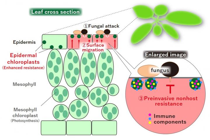 Furthermore, it was revealed that multiple factors involved in plant immunity are specifically found in the epidermal chloroplast. In addition, in mutant plants in which these immune factors did not function, migration of epidermal chloroplasts to the surface layer was confirmed, but the invasion rate of pathogenic fungi increased.