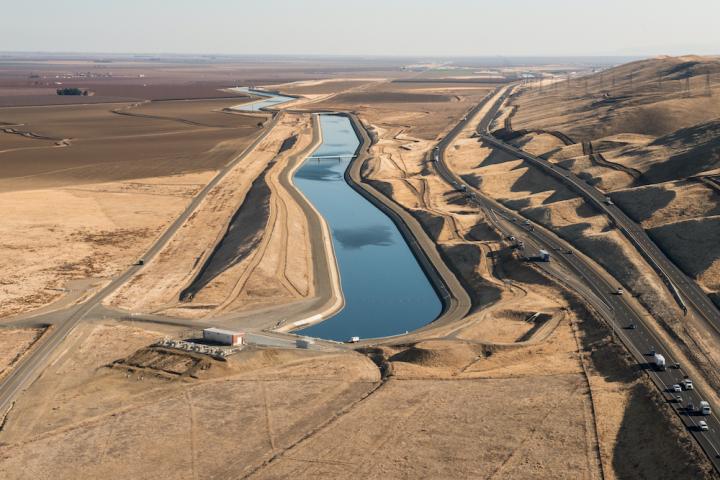 image: The Dos Amigos Pumping Plant in Merced County and California Aqueduct are part of the California State Water Project, an energy-intensive public water project that distributes water throughout the state.