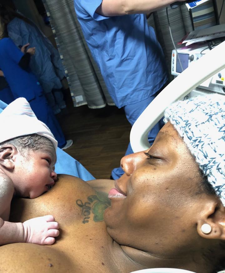 "It was a wonderful blessing, a humbling and beautiful experience," says Lakendrea. "We had skin to skin for a whole hour after birth. Some hospitals take the baby away, but not this one," she said. "I cried. I gave her her first feed. It was my first child, and she was looking at me, and me at her. My husband was coaching me along. It was almost surreal."