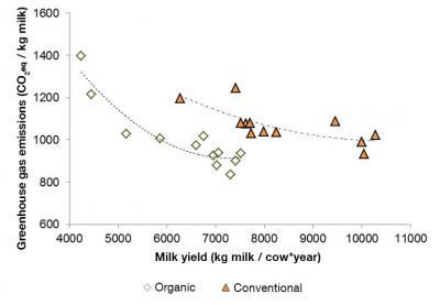 Organic dairy farms produce 20 percent less climate gas emissions than conventional farms.