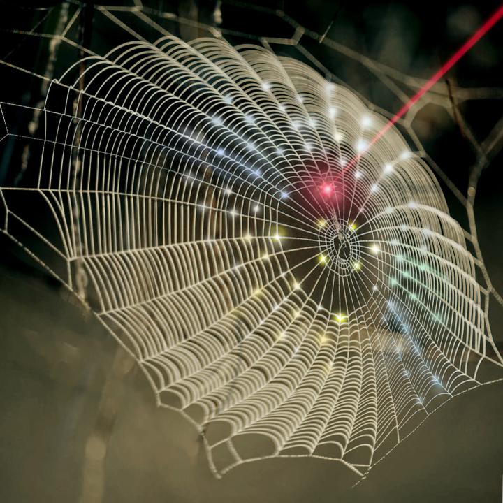 image: A spiderweb-inspired fractal design is used for hemispherical 3D photodetection to replicate the vision system of arthropods.
