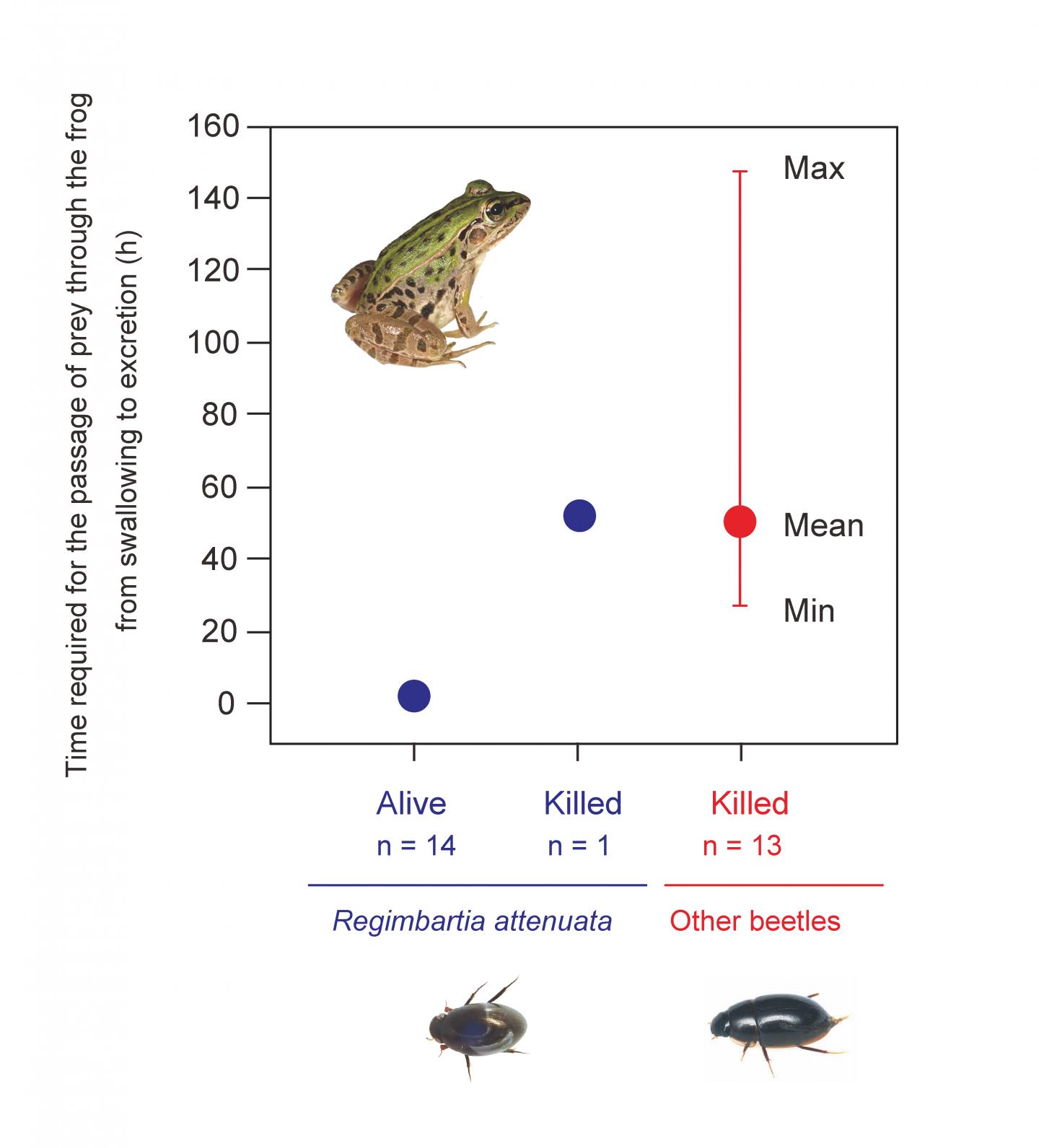 image: Time required for the passage of Regimbartia attenuata and other beetles through the frog Pelophylax nigromaculatus from swallowing to excretion.