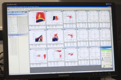 The ex vivo analysis of complex immune responses relies on identifying molecules that are characteristic for certain cell types. The expression of multiple molecules can be analyzed in parallel, creating complex multidimensional data sets. These are generally analyzed using a set of two-dimensional data plots that derive from one another in a hierarchy. The detection of progeny cells derived from an individual ancestral T cell becomes possible through a combination of high-precision detection technology with analysis of very large biological samples: Plots displayed here contain multimensional information from more than 20,000 leukocytes.